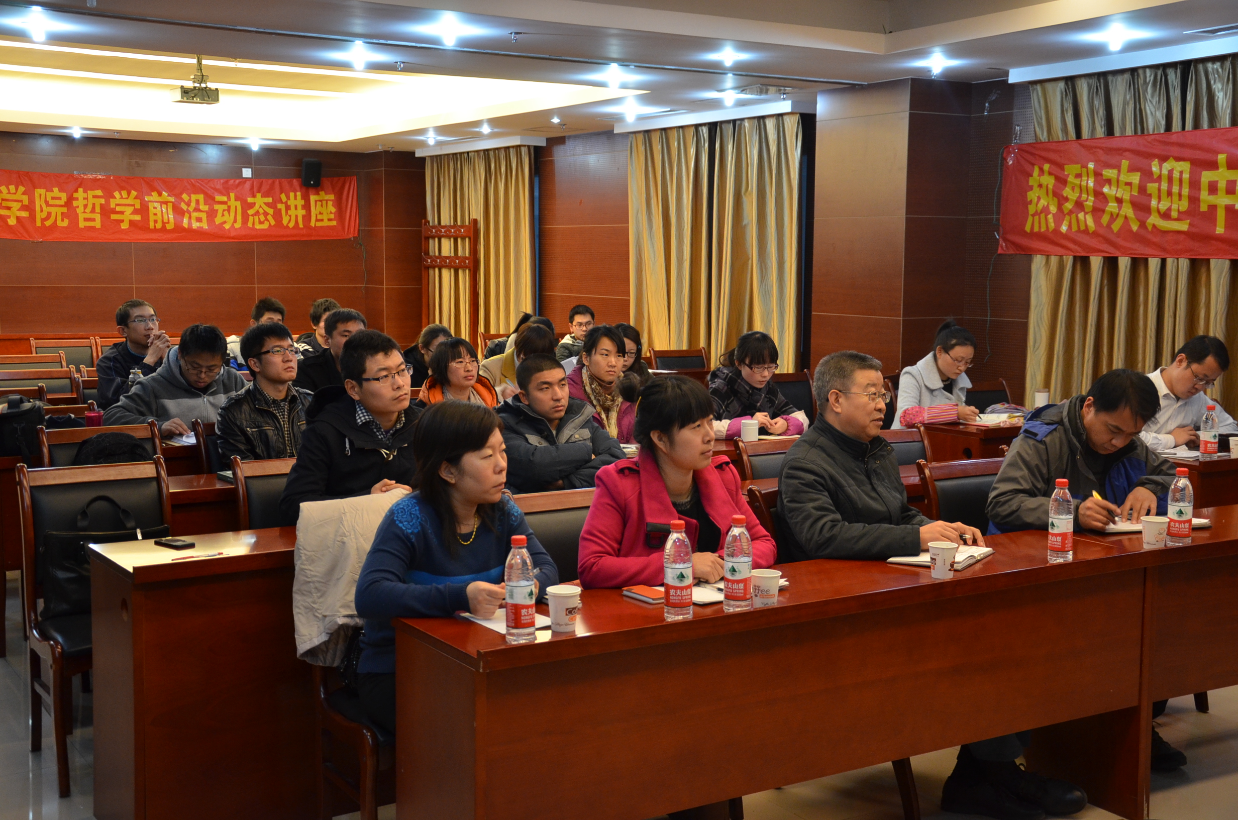 馬俊峰教授是我國為數(shù)不多的文科類教育部“長江學者”特聘教授之一,是教育部首批重大攻關項目“馬克思主義基礎理論若干重大問題研究”主要成員之一,兼任中國辯證唯物主義研究會常務理事、副秘書長,北京市哲學學會常務理事、副秘書長,中國價值哲學研究會常務理事、副會長等職。此次馬俊峰教授應我院學科建設委員會之邀,分別從什么是哲學、什么是哲學世界觀和方法論、哲學思維的基本特征以及當代哲學所存在的問題入手,通過生動的現(xiàn)實問題和事例,與同學們討論了哲學世界觀的養(yǎng)成、哲學的反思功能以及哲學問題的研究方法等基本問題。在現(xiàn)場提問環(huán)節(jié),同學們踴躍發(fā)言,形成了熱烈的學術討論氛圍,也使同學們對哲學研究有了新的認識。