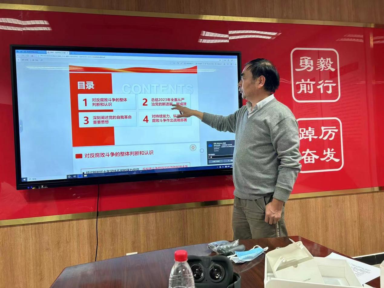 會上,曹培強對第二十屆中央紀委三次全會重要講話精神進行解讀。他重點領學了黨的自我革命思想的九個重要方面,并強調,習近平總書記要推進黨的自我革命,堅決打贏反腐敗斗爭攻堅戰持久戰。在《黨史學習教育工作條例》學習中,曹培強同志重點講到要從思想到行動上學習黨史,并將其作為思政課教師的總則,其中他認為黨史學習的主要內容是要把學識和悟思想相統一,并就學習主要方式,對教學主渠道、紅色資源、主題宣傳教育等方面進行了講述。會上,曹培強以中國文學史中國共產黨的奮斗史上為實例分享了課堂教學中各種藝術形式。