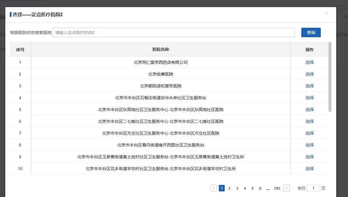 4.進入后對需要修改的醫院點擊“選擇”.,在搜索頁面輸入醫院名稱