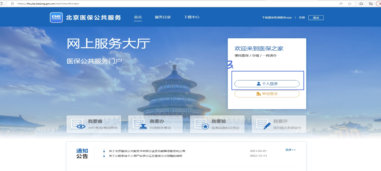 1.登錄北京市醫療保障局官網,網址:http://ybj.beijing.gov.cn,找到北京醫保公共服務平臺。