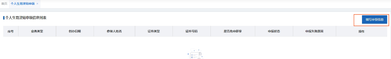 3.進入后會顯示相關信息,如果沒有信息,點擊“填寫申領信息”填寫相關信息