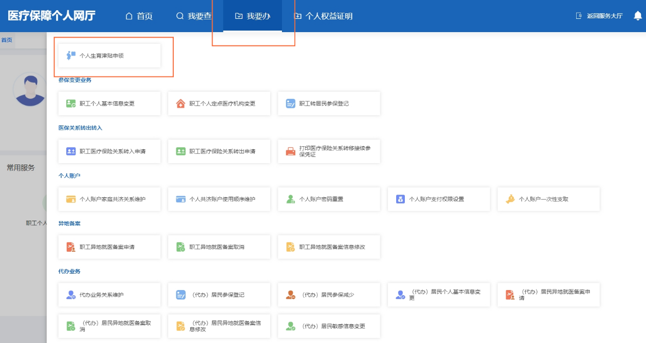 2.在“我要辦”中選擇“個人生育津貼申領”