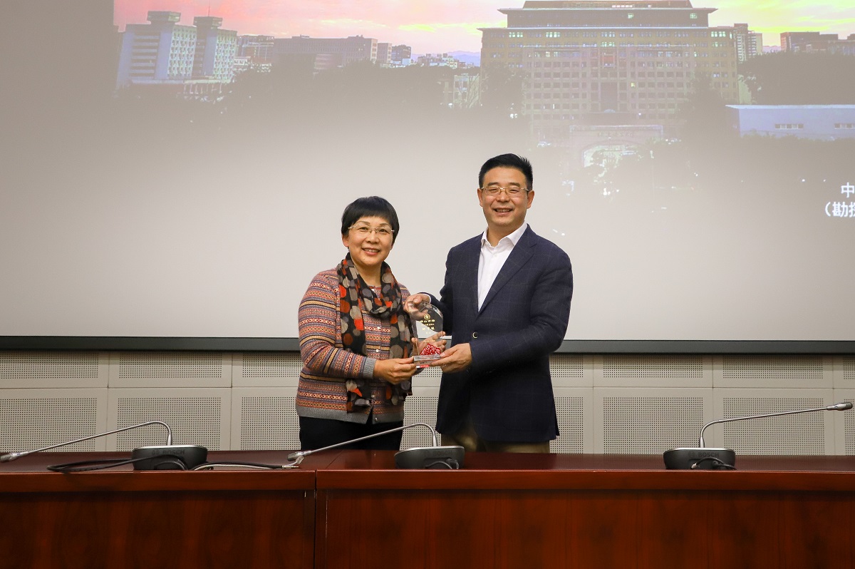 12月3日下午,中國石油大學在主樓C308會議室舉辦第十六期蟒山講壇,中國科學院院士、中國石油勘探開發研究院副院長鄒才能應邀作題為“世界能源革命與中國能源獨立”的專題報告。黨委書記山紅紅、校長張來斌,副校長鮑志東、李根生,相關職能部門、學院(研究院)負責人以及200余名師生共同聆聽了報告。山紅紅為鄒才能院士頒發了“蟒山講壇”紀念牌。