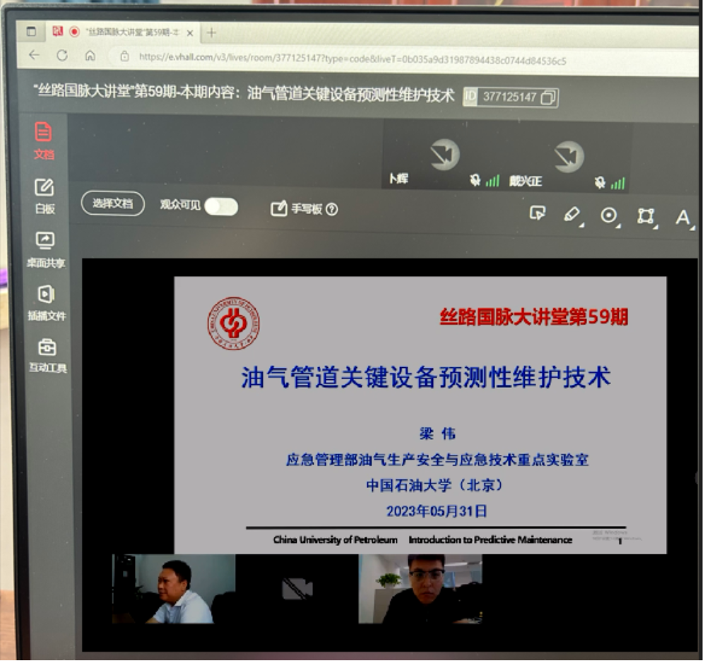 5月31日下午,第59期“絲路國脈大講堂”邀請中國石油大學(北京)教授、應急管理部油氣生產安全與應急技術重點實驗室副主任梁偉講授油氣管道關鍵設備預測性維護技術。