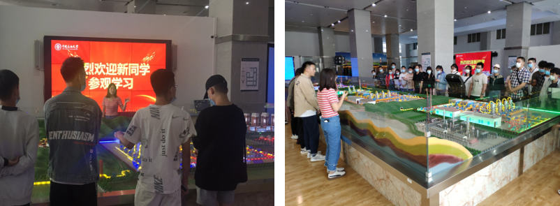 首先,朱益對新生的到來表示熱烈歡迎,并對教學演示中心做了整體的介紹。隨后詳細介紹了海洋平臺的類型、功能以及海底管道的鋪設,并結合測井系統模型,講解了測井的基本內容和方法。