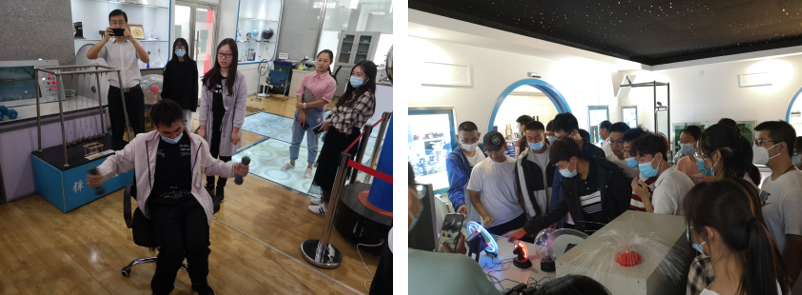 最后,同學們參觀并體驗了豐富多彩的物之理展廳,對其中涉及到力學、電學、磁學的設備儀器表現出了濃厚的興趣。