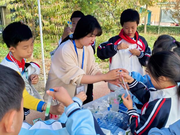 科技?jí)粝耄饓?mèng)揚(yáng)帆起航;科技奧秘,暢享美好未來。為激發(fā)孩子們的創(chuàng)造力,10月24日,安全學(xué)院26名志愿者抵達(dá)沙河第四實(shí)驗(yàn)小學(xué)進(jìn)行科技節(jié)支教活動(dòng),以"科學(xué)小實(shí)驗(yàn)"為介質(zhì),幫助孩子們?cè)谔剿鞯倪^程中體會(huì)科學(xué)的樂趣。活動(dòng)期間志愿者們通過氣球直升機(jī)、酸堿檢測(cè)、風(fēng)向標(biāo)、密度瓶等物理化學(xué)小實(shí)驗(yàn)激發(fā)孩子們的求知欲和探索欲,培養(yǎng)孩子們的探究和學(xué)習(xí)能力。以理論與實(shí)踐相結(jié)合的方式輔助孩子們完成科學(xué)實(shí)驗(yàn)和新知識(shí)的教學(xué),為孩子們提供全面的教育教學(xué)服務(wù)。