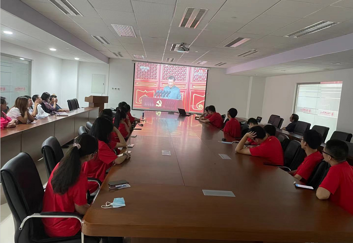 7月1日上午8時,慶祝中國共產黨成立100周年大會在北京天安門廣場隆重舉行。學院組織師生黨員代表在主樓A520會議室觀看慶祝中國共產黨成立100周年大會全程直播,認真聆聽習近平總書記發表的重要講話。大會結束后,師生共同高唱《沒有共產黨就沒有新中國》。此外,各黨支部通過多種方式組織師生集體觀看直播。