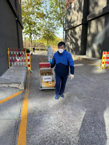樊建春、王金江、段禮祥三位教授挺身而出,積極解決學生的需求,通過接力搬運的方式,克服重重困難,成功為100多名學生轉運急需的電腦等滯留物品。由于疫情,樊建春、王金江兩位老師被困在了北校區的辦公室,在了解到100多位研究生急需滯留在辦公室的筆記本電腦等物品后,樊建春、王金江第一時間與每位同學點對點的聯系,主動承擔起協調轉運滯留物資的工作,與北校區的輔導員、志愿者一起打包、整理好了每位同學的物品。根據校園防控政策的要求,這些物品無法從北校園直接轉移到東校園,安全工程系段禮祥教授得知后,立即前往北校區東門進行物資接力轉運,搭建起物資在校區間的運輸橋梁。三位教授與志愿者們齊心協力,在很短的時間內完成了百余件物品的轉運,有效保障了同學們的科研學習、求職就業等工作。一件件成功轉運的滯留物品,詮釋著特殊時期師生們愛與愛的接力、心與心的相連。