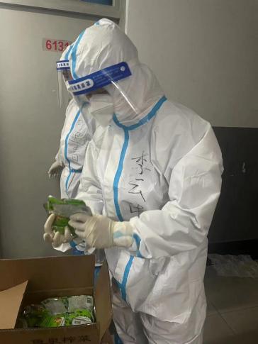 6號樓的疫情防控形勢嚴峻,不時有同學被轉運,當看到熟悉的老師們在給大家服務的時候,同學們的思想壓力得到了緩解,對快速戰勝疫情、恢復正常學習生活充滿了信心。