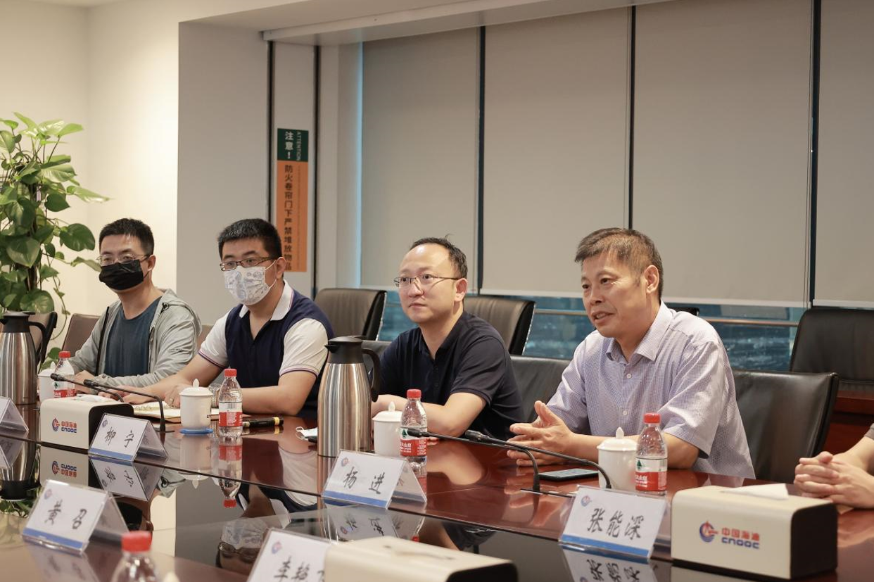 中海油上海分公司黨委書記、總經理羅勇,行政管理部經理嚴維鋒,工程技術作業中心經理黃召等接待了楊進一行。羅勇對楊進一行表示歡迎,介紹了中海油上海分公司的發展情況,希望加強與中石大的合作交流,并感謝中石大對中海油上海分公司的大力支持。