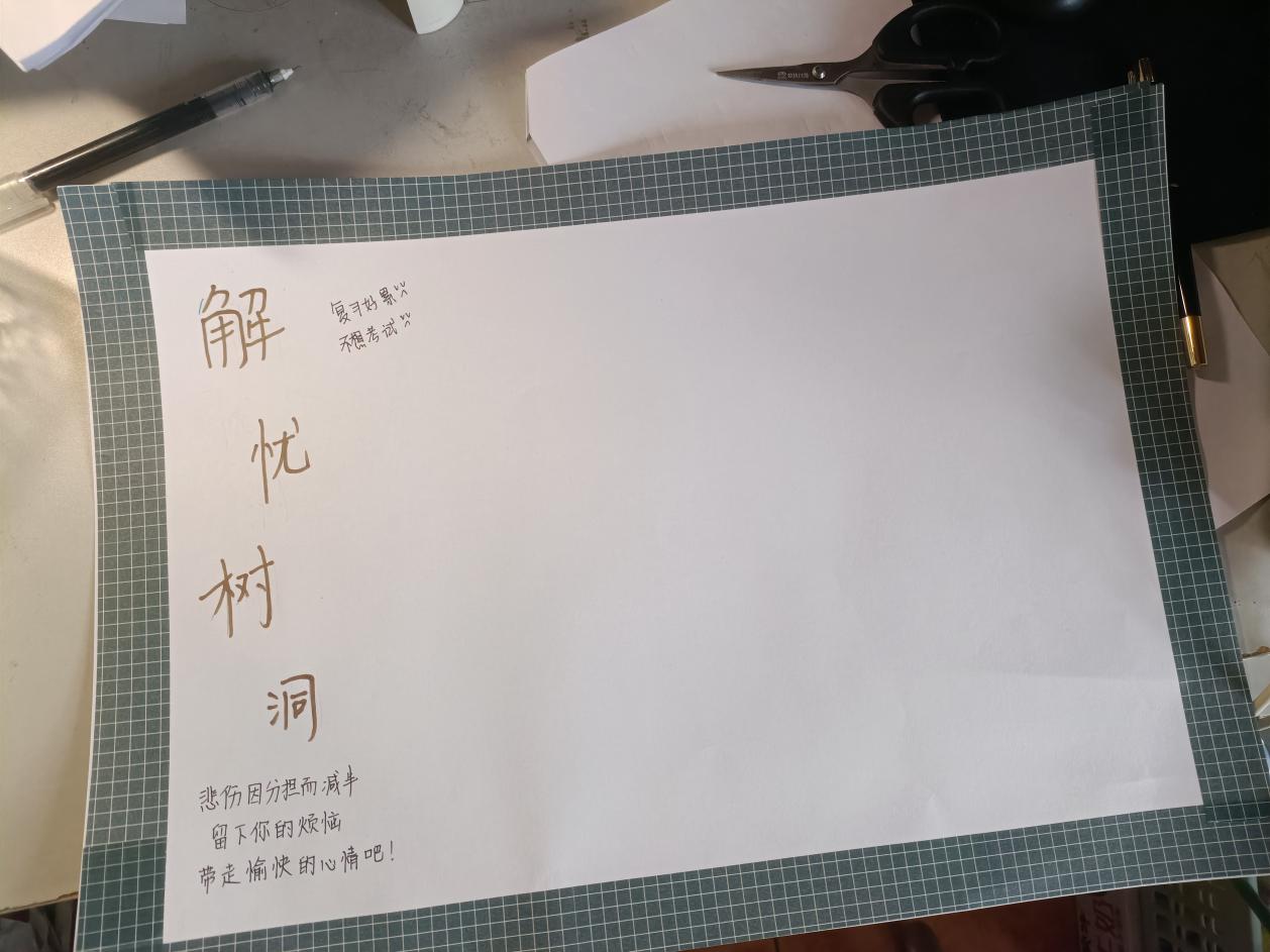 臨近期末,為幫助同學們排解學習壓力,釋放負面情緒,以更好的狀態學習和生活,安全與海洋工程學院青年志愿者協會于6月10日至6月11日在潤杰學生公寓舉辦“解憂樹洞活動”。同學們可以寫下自己的煩惱,傾訴心中的憂愁;也可以回復他人的留言,留下鼓勵和祝福?!氨瘋蚍窒矶鴾p半”,“解憂樹洞”活動為同學們提供了一個很好的抒發負面情緒的場所,增加了心理排解渠道,緩解學生負面情緒,讓他們能夠更加放松身心,更好地面對學習和生活中的困難。