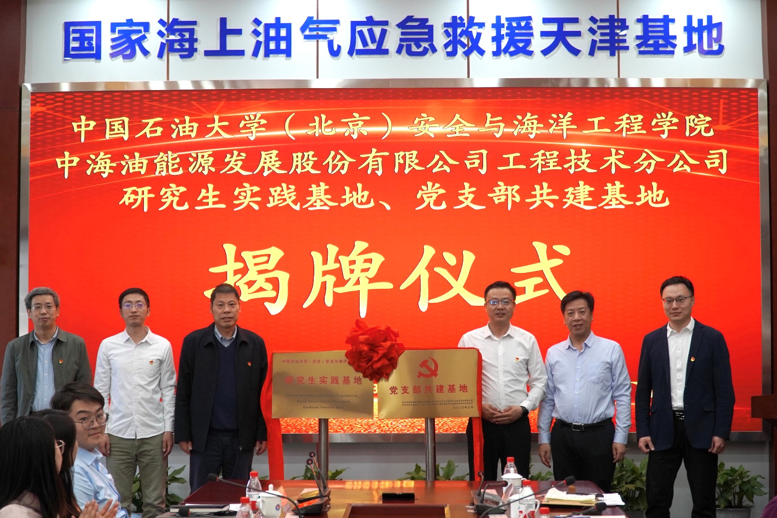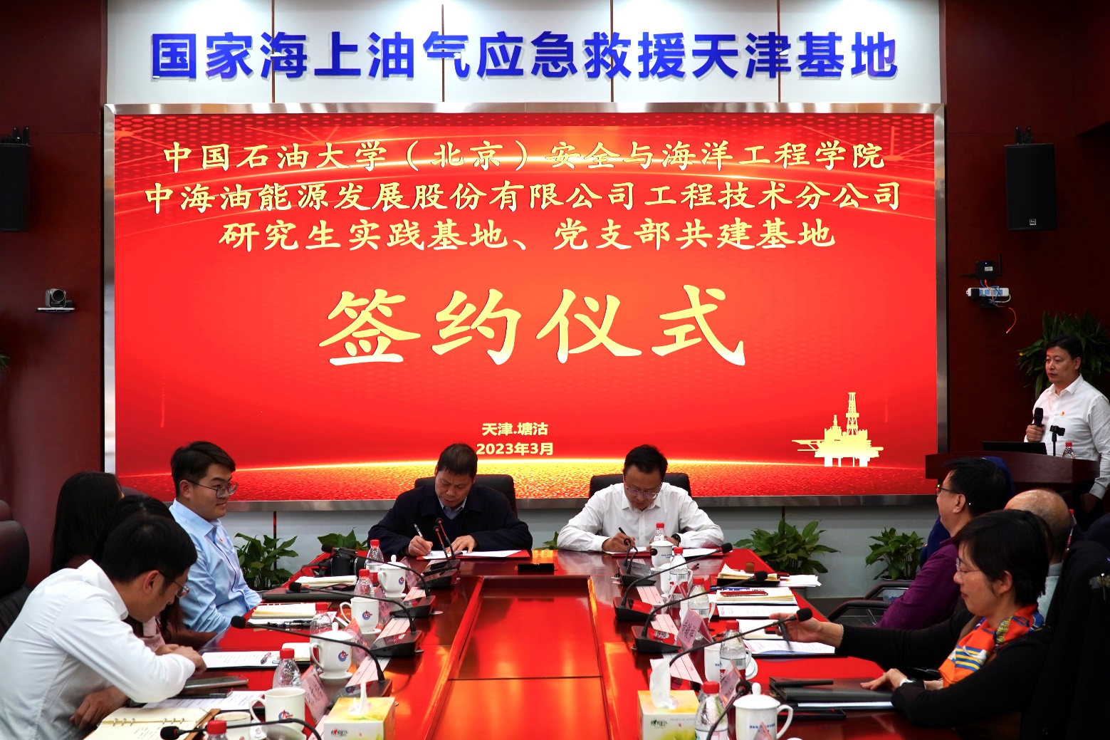 隨后,雙方簽訂了校企黨支部結(jié)對(duì)共建協(xié)議及研究生實(shí)踐培養(yǎng)協(xié)議。安全與海洋工程學(xué)院副院長(zhǎng)楊進(jìn)、鄭文培,機(jī)械與儲(chǔ)運(yùn)工程學(xué)院副院長(zhǎng)劉書海共同為井控中心與安全學(xué)院實(shí)習(xí)實(shí)踐基地揭牌。