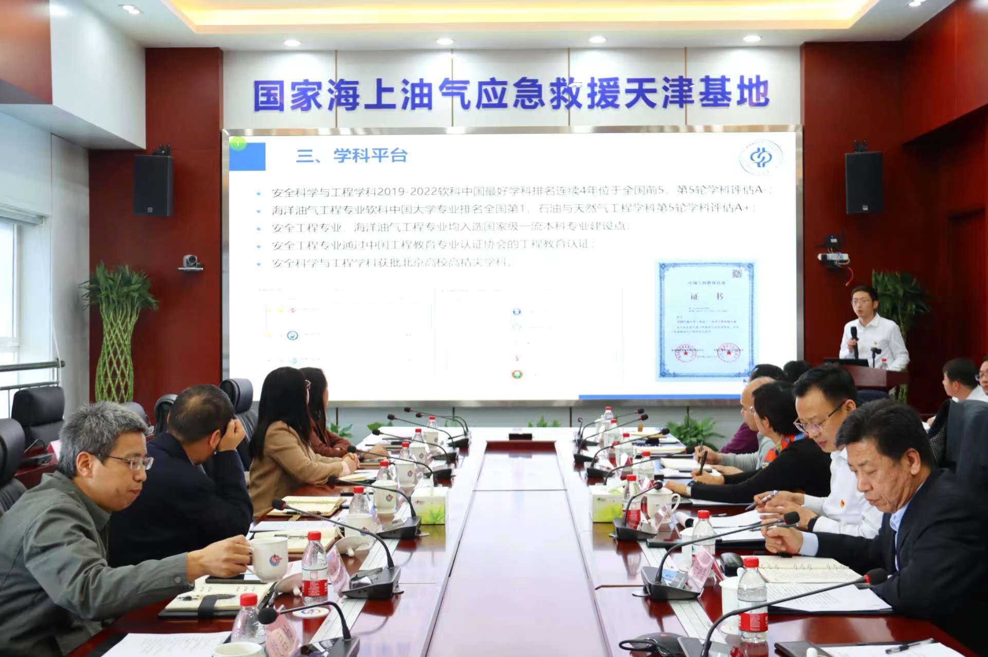 會(huì)后,與會(huì)成員一起參觀了國(guó)家海上油氣應(yīng)急救援天津基地。