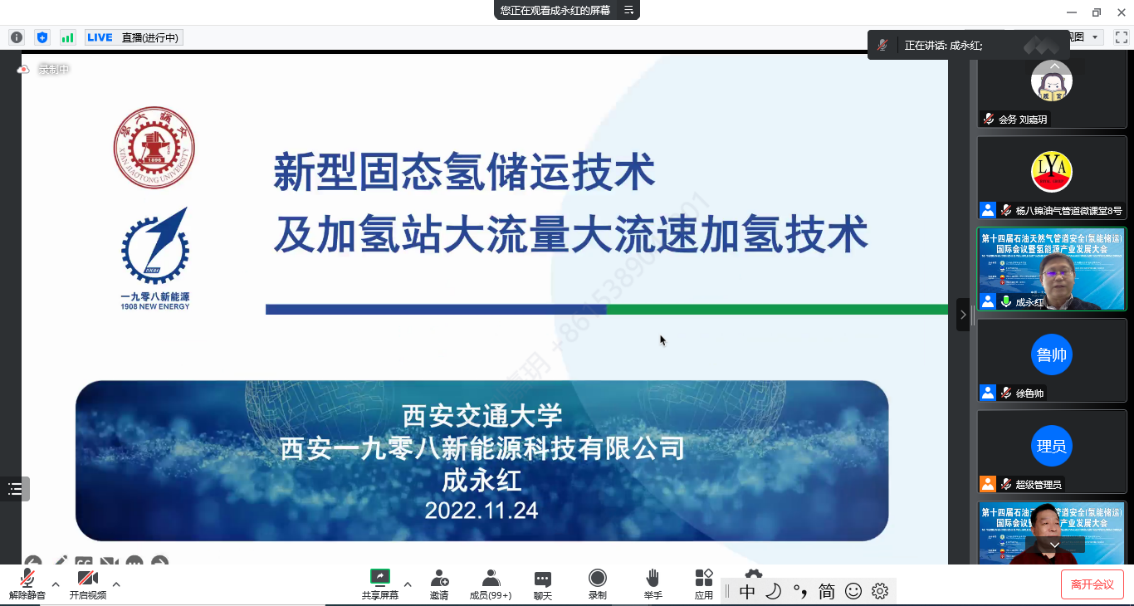 11月24日至25日,由公共安全科學技術學會石油與化工安全專業工作委員會、北京石油學會、中國石油勘探開發研究院新能源研究中心、中國石油大學(北京)聯合主辦,油氣生產安全與應急技術應急管理部重點實驗室、管道技術與安全研究中心承辦的“第十四屆石油天然氣管道安全(氫能儲運)國際會議暨氫能源產業發展大會”在線召開。