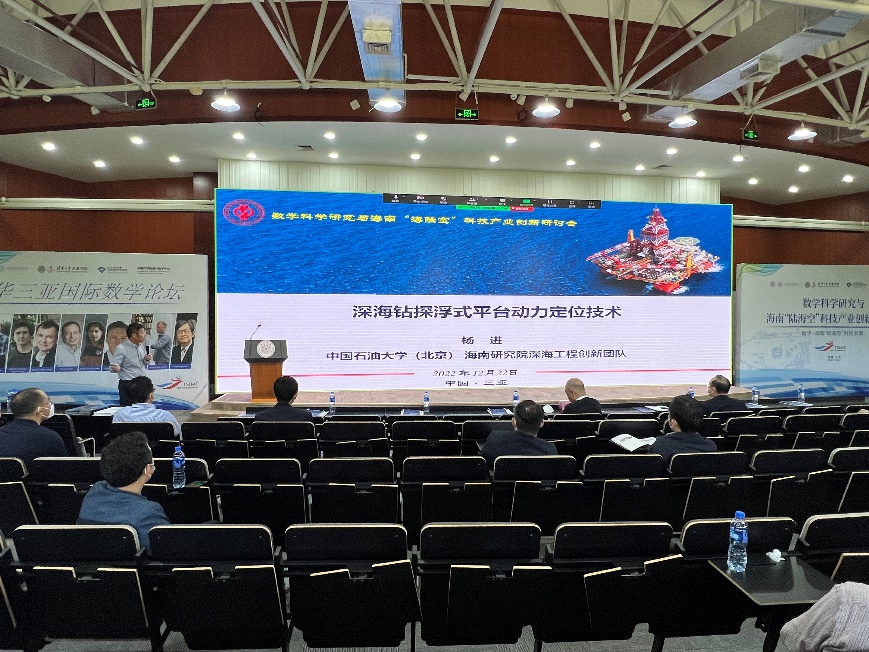 楊進教授從世界海洋油氣發展、中國海洋油氣發展,引出了深水動力定位平臺,介紹了中國最先進的、最具代表性的平臺—HYSY981,提出了深水浮式平臺定位難題以及數學方面的需求,通過HYSY981的真實案例,介紹了相關的計算方法,同國際上眾多公司對比,希望同在數學的引領與帶動下,解決浮式平臺定位的難題并早日實現國產化。