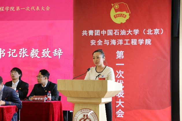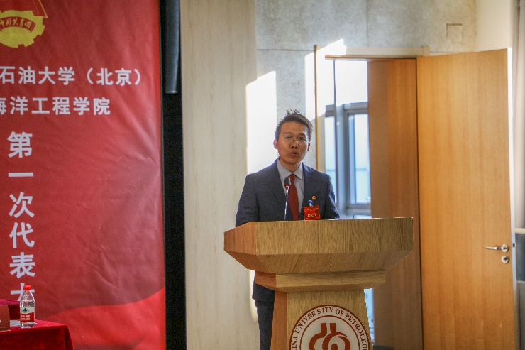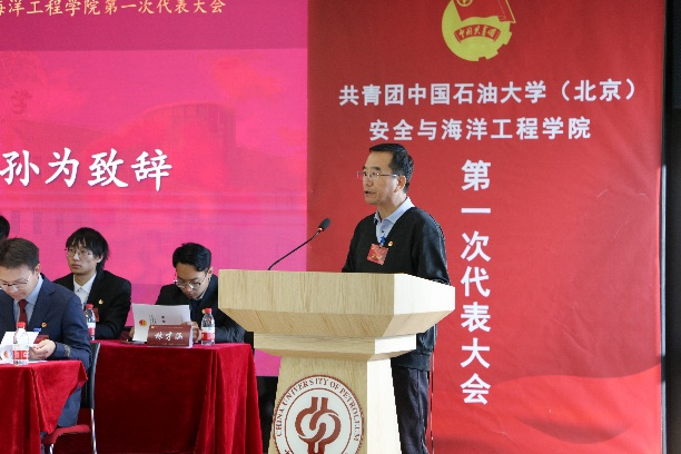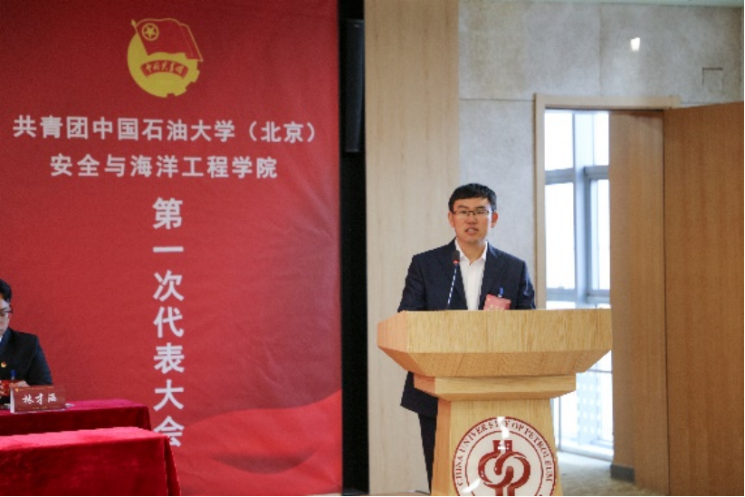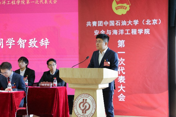 周學智代表學校團委向大會召開表示熱烈祝賀!他充分肯定了學院自建立以來,學院團委所取得的一系列成績,其中包括代表學校首次捧得全國大學生暑期社會實踐成果TOP10,首次獲評北京市十佳主題團日活動,在第十四屆挑戰杯全國創業計劃競賽“一帶一路”專項賽中摘得學校唯一國賽銅獎等。他深情寄語廣大青年,要堅定信念、志存高遠,把個人價值追求融入民族進步之中;要勤奮學習、躬行實踐,打牢進步根基,更好地擔負起重擔重任;要務實奮進、創新創業,用行動回答“教育強國,中石大何為”;要砥礪品德、升華境界,積極弘揚中石大精神。