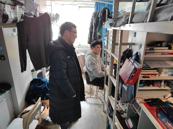 12日,安全學院黨委副書記趙凱以及各年級輔導員分別對學生宿舍的衛生、安全情況進行了逐一檢查,排查了宿舍內違章電器、可燃物堆積等安全隱患問題,提醒同學們注意宿舍用電安全,保持干凈整潔的宿舍環境。