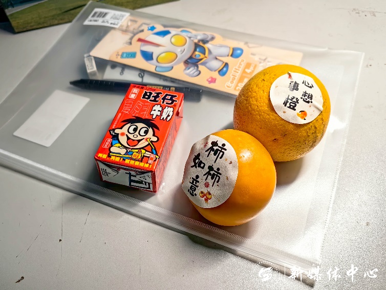 根據考研學子的美好愿景與實際需求,學院準備了考研加油包,禮包包括“心想事橙”甜美橙子、“柿柿如意”吉祥柿子,“運氣旺旺”旺仔牛奶。除此之外,學院還貼心地準備了考試所用的文具禮包等實用物品,為考研學子送上滿滿的“安全心意”