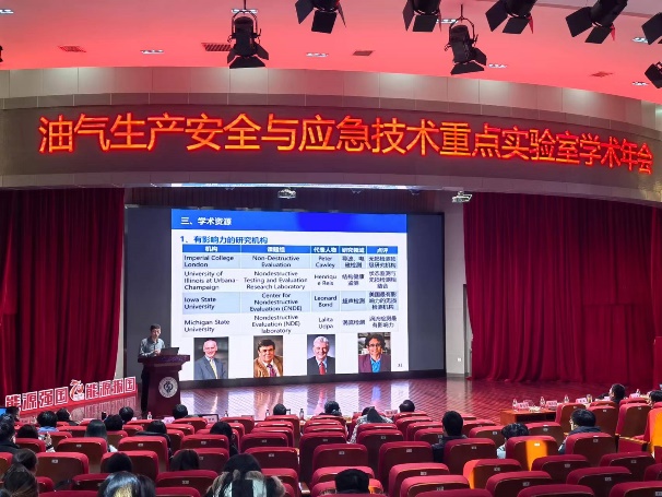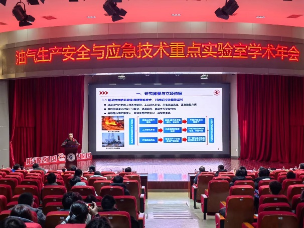 學(xué)術(shù)年會分特邀報告和主題報告,重點實驗室副主任李云濤、王金江、鄭文培分別擔(dān)任會議主持人。在特邀報告環(huán)節(jié),樊建春教授、李云濤副教授分別介紹了實驗室2023年獲批立項的2項國家重點研發(fā)項目“陸上超深油氣井井噴防控關(guān)鍵技術(shù)裝備及示范應(yīng)用”、“高壓大口徑油氣管道泄漏應(yīng)急處置技術(shù)與裝備”的相關(guān)研究內(nèi)容。胡瑾秋教授、王金江教授、鄭文培副教授針對“油氣生產(chǎn)復(fù)雜系統(tǒng)安全預(yù)警關(guān)鍵技術(shù)”、“油氣生產(chǎn)裝備健康監(jiān)測與智能運維關(guān)鍵技術(shù)”和“油氣裝備結(jié)構(gòu)損傷檢測技術(shù)”做了系統(tǒng)性地講解,并介紹了最新的研究進展。在主題報告階段,實驗室的13位青年教師結(jié)合自己的研究方向,分別就“鐵磁材料摩擦磁化效應(yīng)”、“海洋油氣鉆采系統(tǒng)動態(tài)風(fēng)險評估”等方面的研究成果進行了匯報。