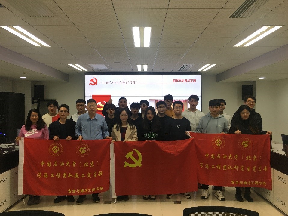 11月18日,深海工程團(tuán)隊(duì)教工黨支部和研究生黨支部聯(lián)合開展了黨的十九屆六中全會(huì)專題學(xué)習(xí)活動(dòng)。活動(dòng)由教工支部書記楊進(jìn)主持,兩個(gè)黨支部全員參加,以線上線下相結(jié)合的方式舉辦。