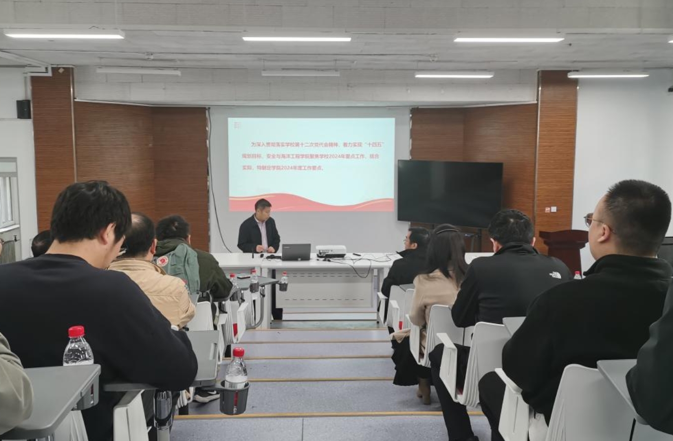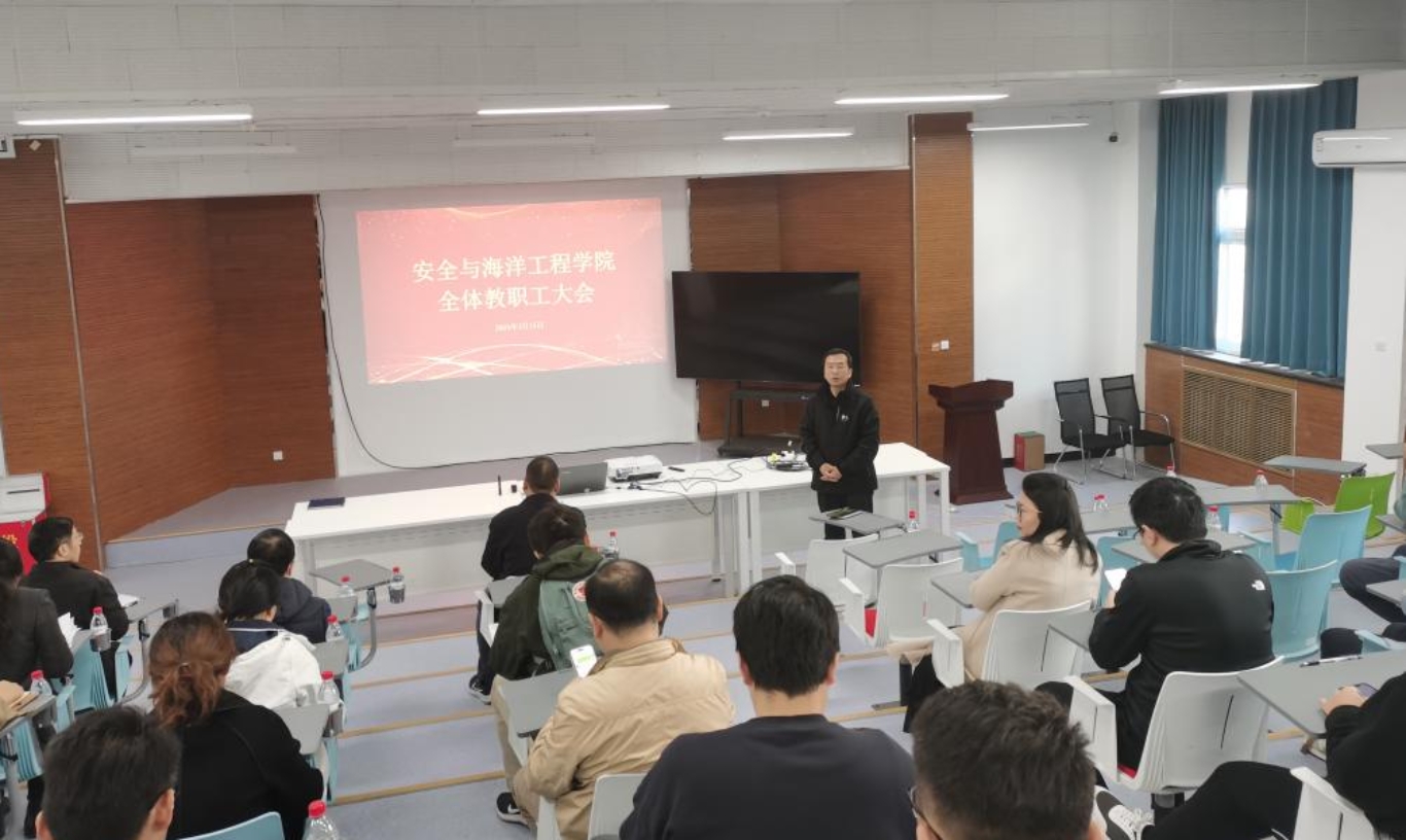 3月15日上午,安全與海洋工程學(xué)院在安全科技樓召開全體教職工大會(huì),學(xué)院領(lǐng)導(dǎo)班子及全體教職工參會(huì),特邀張來斌院士出席。本次會(huì)議部署了2024年度學(xué)院工作重點(diǎn),并對研究生培養(yǎng)與指標(biāo)分配等相關(guān)工作細(xì)則進(jìn)行詳細(xì)解讀,全體與會(huì)教師對師德教育進(jìn)行集中學(xué)習(xí),觀看違規(guī)案例警示與分析,加強(qiáng)學(xué)院師德師風(fēng)建設(shè)。會(huì)議由學(xué)院黨委書記孫為主持。