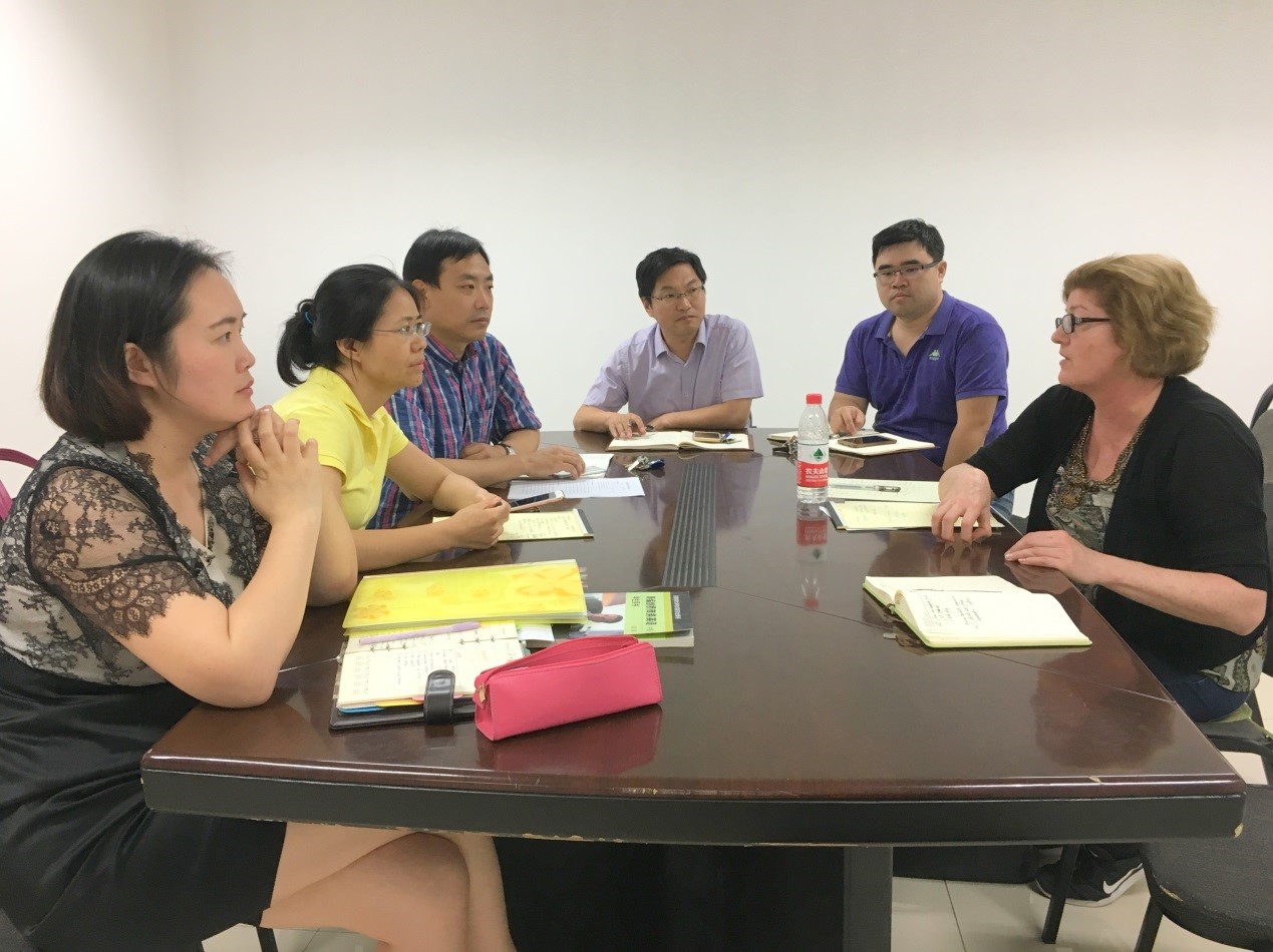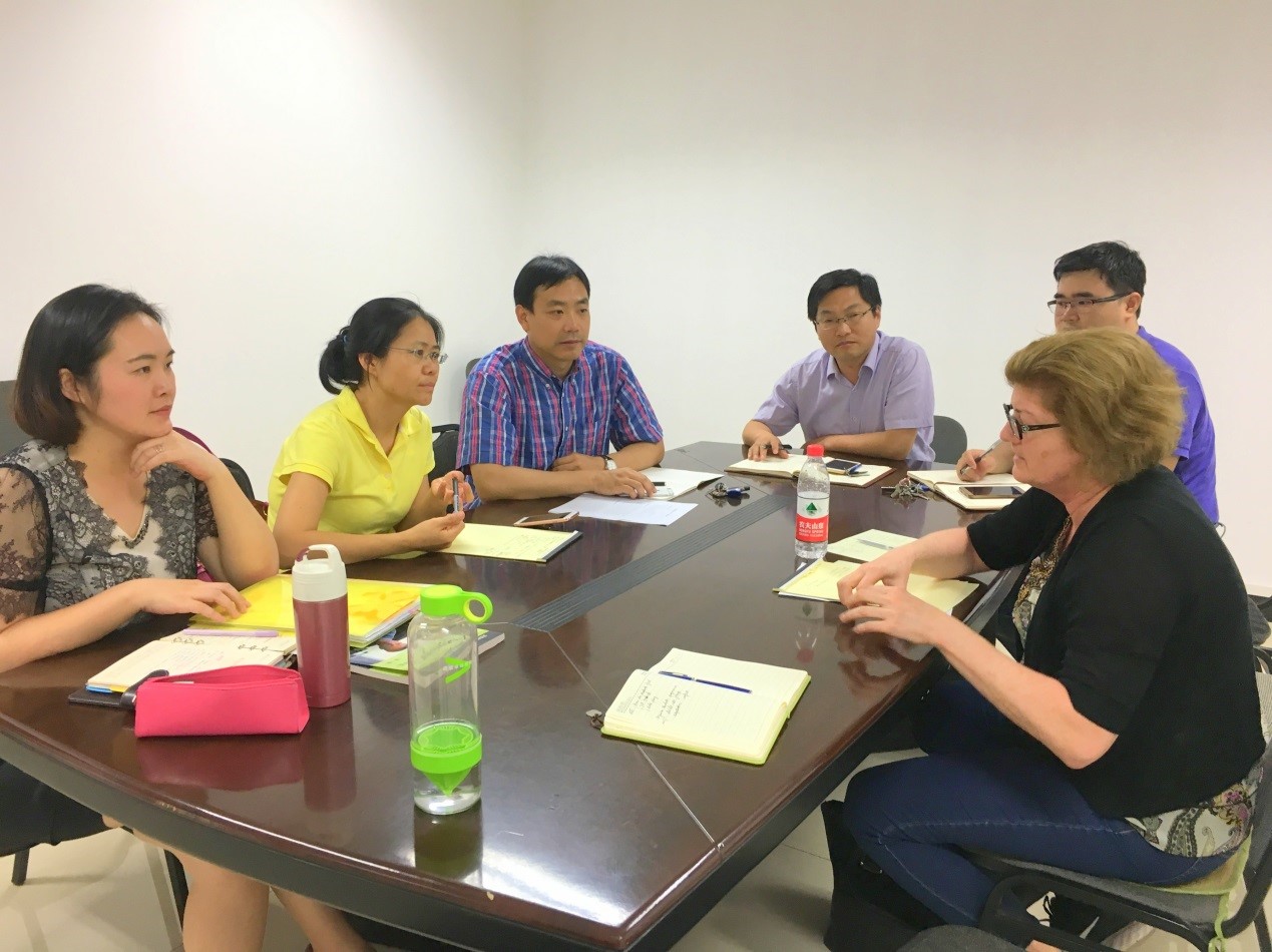 5月19日,工商管理學院召開了第一次全英文教學團隊討論會,院長郭海濤、外籍專家Monica Thiel博士及全英文授課教師等5人參加了此次討論會。