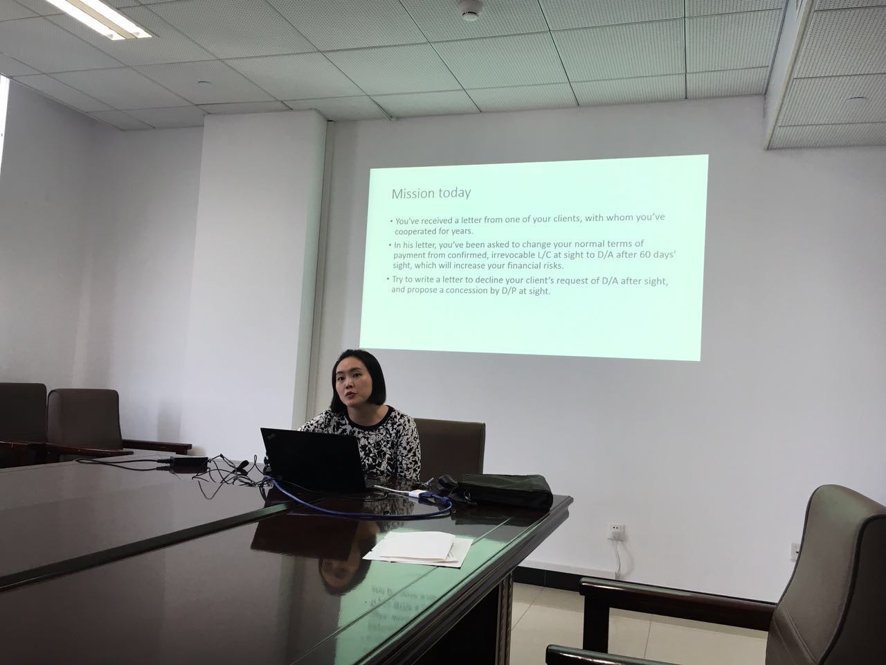 Monica針對講課方法提出很多建議,例如:教師使用的教材、案例等要使用最新的版本,體現(xiàn)當前社會發(fā)展的最新情況;在講課中,注重學(xué)生的自我反饋,鼓勵學(xué)生更加自信、更加有勇氣地用英文表述自己的觀點等。