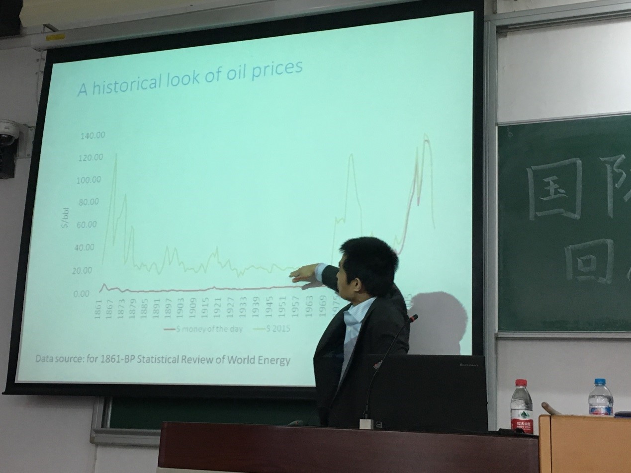 2017年3月14日,工商管理學院邀請到來自英國鄧迪大學(University of Dundee)能源法律與政策中心牟效毅教授,為學生開展主題為《國際油價長期走勢與周期性的回顧與展望》(The Long-run Trend and cycle of International Oil Prices)的學術報告,該活動在南區三教208教室成功舉辦。