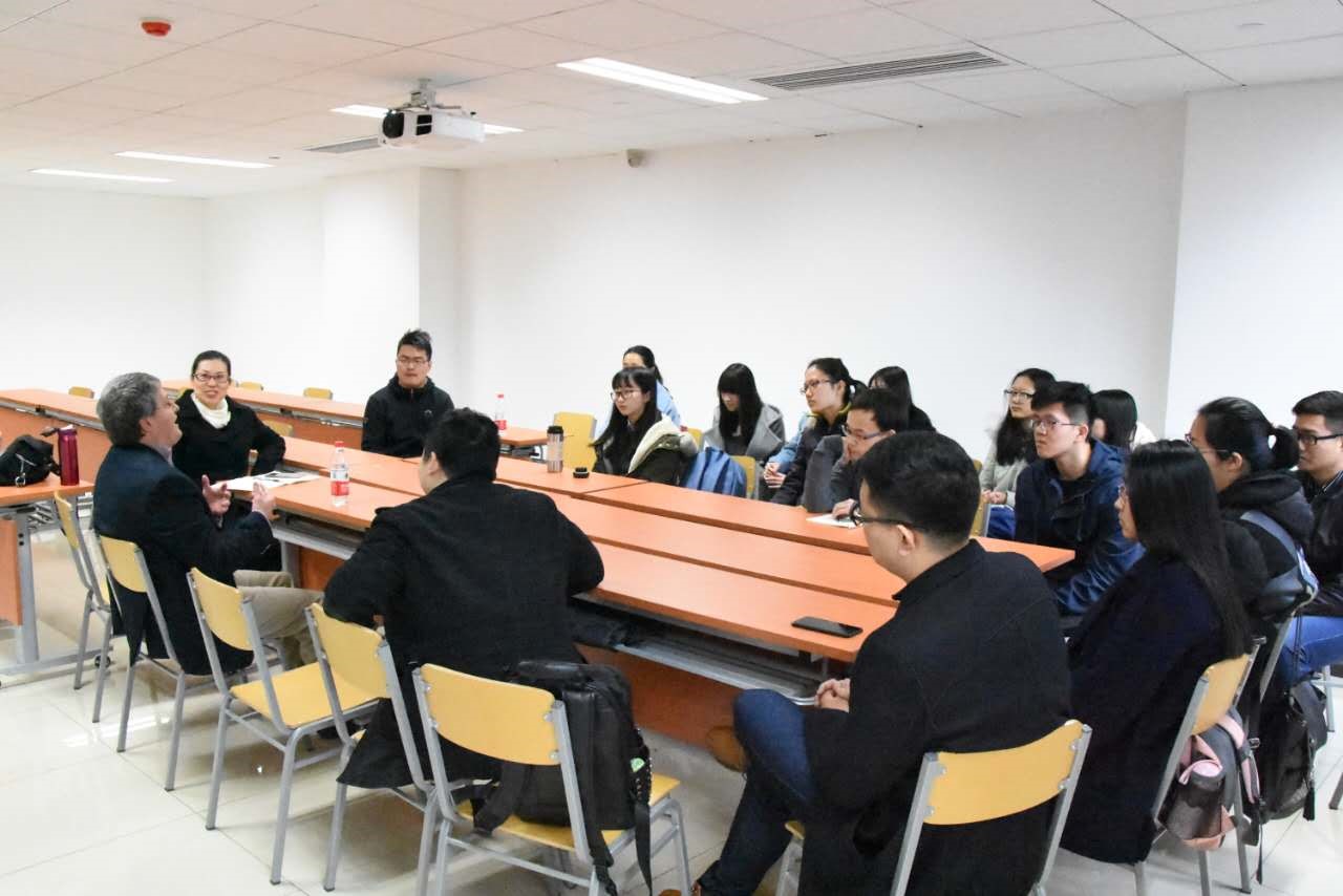 2017年3月24日上午9點到11點,商學院老師邀請塔爾薩大學國際商務教授,國際商業與創業學院會員,特雷克斯集團的高級財務分析師Michael L. Troilo 在新綜合樓B座301教室,為商學院學生舉辦了一場別開生面的海聊會。Michael老師主要為塔爾薩大學能源管理MBA主講國際能源商務合作與比較文化等課程,與中國石油大學(北京)商學院有多年的教學與科研上的合作。這次來我校是為商學院國際貿易及能源經濟本科專業開設《比較文化與國際貿易》課程,并就能源金融方面的研究,與商學院相關教師進行科研合作和交流。