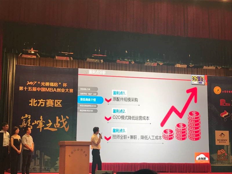 中國MBA創業大賽已經成功舉辦十四屆,已成為具有全國影響力、代表全國MBA創業實力的經典賽事。在此次第十五屆比賽中,中國石油大學(北京)MBA李筱君、陳玲、張慶旺、陳偉等組建了“小車匠技師聯盟項目”團隊,在領隊教師、石大MBA中心執行副主任金鐳老師指導下參賽。經過前期的緊張準備、初賽,該團隊在69支隊伍中晉級成功,殺入北方賽區決賽。