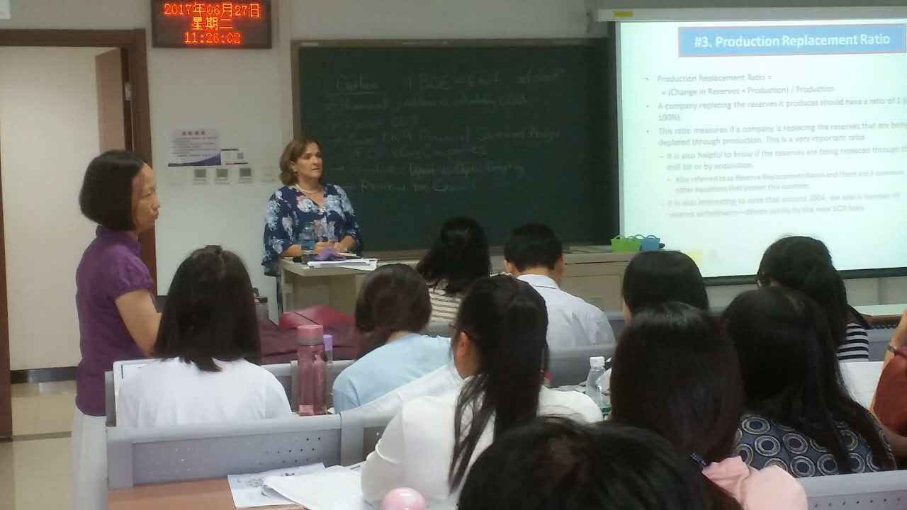 石大商學(xué)院經(jīng)濟(jì)與貿(mào)易系邀請(qǐng)俄克拉荷馬州立大學(xué)的Betty Jo Simkins教授,Liying Xu教授共同為能源經(jīng)濟(jì)本科生講授《能源金融》課程。