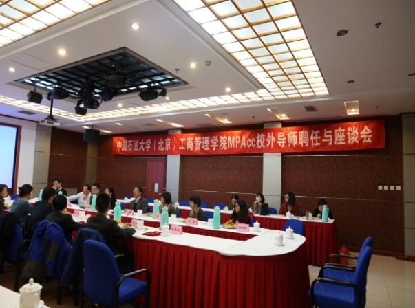聘任儀式結束后,參會人員進行了深入地座談交流。雙方就MPAcc人才培養模式的特點、面臨的挑戰和機會、課程設置體系、實習質量的提升、論文雙導師制及合作方式等進行了充分地溝通和交流。