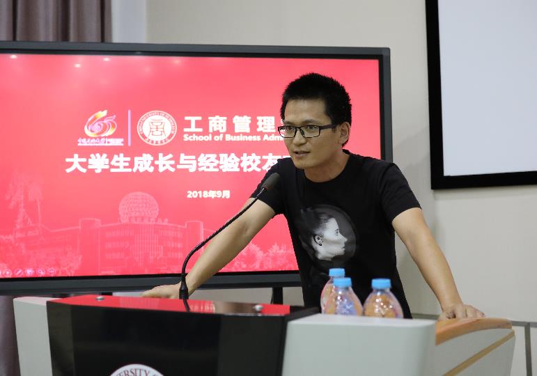 92屆學長李俊杰首先分享自己在石大的成長經歷。他說,踏進校園,心情像涼爽的金秋一樣輕快舒服,每走一步,都心懷感恩,每看一眼,都滿懷敬意?!笆蠛穹e薄發開物成務的校訓一直激勵著我不斷進步和成長?!彼麖娬{,在人生中最美好的大學時光,要用心成長、不斷成熟、積累知識。大學是人生重要的轉折點,要學會規劃自己的人生,確立自己的時間表和路線圖,為步入社會打下基礎;找好自己的人生導師,樹立正確的人生、價值觀、世界觀;找到自己的短板,正確面對不斷改進;注重溝通能力和文字表達能力、領導能力以及良好的心理素質的培養。而想像和得到之間是做到,所以要有持之以恒的毅力。
