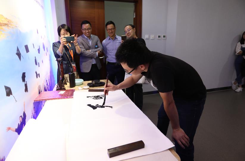 隨后,馬春愛教授陪同嘉賓和校友游覽校園、參觀校史館。校史館每處都安排了校史講解志愿者,他們說起學校的歷史,滔滔不絕;他們談到優秀校友創下的佳績,無比自豪;他們講到雄厚的師資,慷慨激昂。校友們看到校史館的照片、聽志愿者的講解,思緒仿佛回到了大學最青春的年華,仿佛看到了自己在校園里稚嫩的面龐,不少校友在校史館電子留言臺和書法留言區留下了自己對石大深深的愛和祝愿。