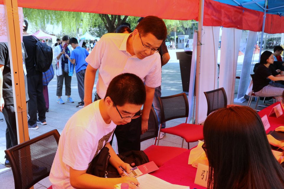 24日下午,楊棉之來到青年園公寓旁南廣場迎新報到處看望報到新生,了解迎新流程和新生報到情況。
