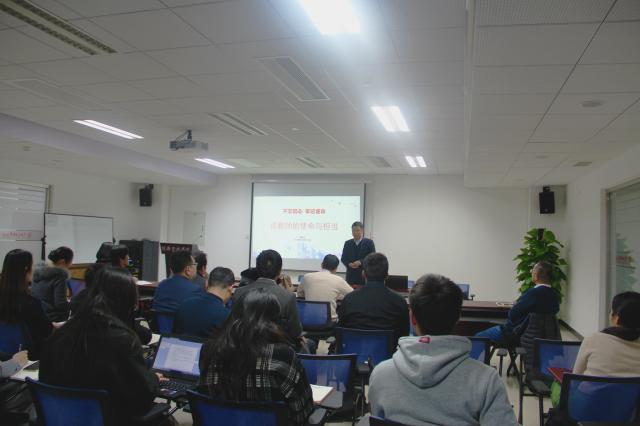 院長楊棉之以“談教師的使命與擔(dān)當(dāng)”為題,為教職工黨員講授黨課。他闡述了教師的初心和使命是立德樹人,要時(shí)刻把“四有好老師”標(biāo)準(zhǔn)作為立身之本。他總結(jié)了我院整體建設(shè)情況,分析了新時(shí)期學(xué)院教育教學(xué)綜合改革面臨的問題,提出了多項(xiàng)促進(jìn)學(xué)院長遠(yuǎn)發(fā)展的改進(jìn)措施。