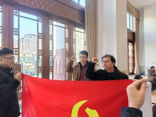 在黨史展覽館的莊嚴氛圍中,應用經濟系與金融系教工黨支部還特別安排了一個簡短而隆重的預備黨員轉正儀式。儀式由黨支部書記李麗紅主持,全體黨員共同見證了這一刻。高立同志在黨旗前莊嚴宣誓,表達了他對黨的忠誠和對事業的承諾。在宣誓儀式上,高立同志激動地表示,能夠在黨史展覽館這樣一個充滿歷史意義的地方轉正,對他來說具有非凡的意義。他說:“在這里,我更加深刻地感受到了黨的偉大和光榮,也更加堅定了我為黨的事業奮斗終身的信念。”