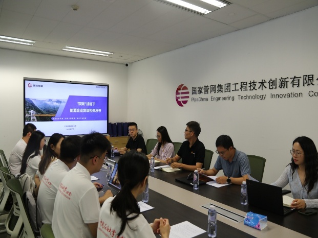 圖為實(shí)踐團(tuán)與國(guó)家管網(wǎng)集團(tuán)工程技術(shù)創(chuàng)新公司戰(zhàn)略咨詢中心共同開(kāi)展聯(lián)合專題研討活動(dòng)