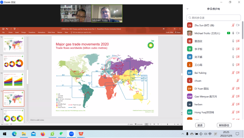 本次全英文講座中,Michael教授對(duì)比分析了全球各地區(qū)原油、天然氣、煤炭及新能源生產(chǎn)、消費(fèi)及進(jìn)出口貿(mào)易狀況,并圍繞期貨、遠(yuǎn)期、期權(quán)、互換等金融工具在能源行業(yè)的應(yīng)用進(jìn)行講述。教授的講解深入淺出,生動(dòng)有趣,深受同學(xué)們喜愛(ài)。同學(xué)們講座前用心預(yù)習(xí)和準(zhǔn)備,講座期間,充分把握與教授交流的機(jī)會(huì),以文字、語(yǔ)音等形式踴躍提出問(wèn)題和想法,教授一一用心解答,并對(duì)同學(xué)們所提的問(wèn)題贊不絕口。師生互動(dòng)積極,現(xiàn)場(chǎng)氣氛融洽。