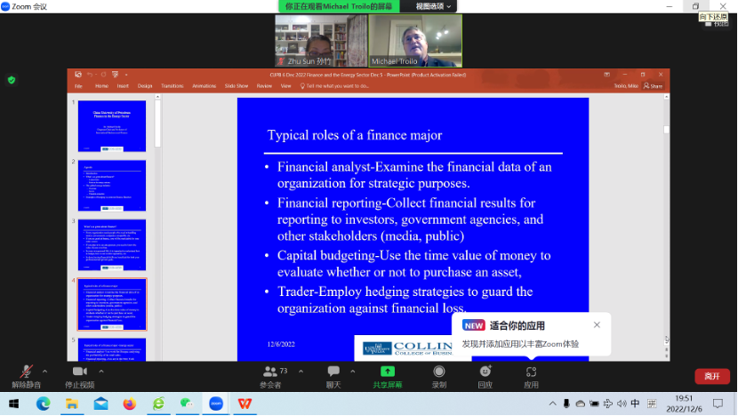 金融系邀請(qǐng)Michael L. Troilo教授為2022經(jīng)濟(jì)學(xué)新生做能源金融線上講座
