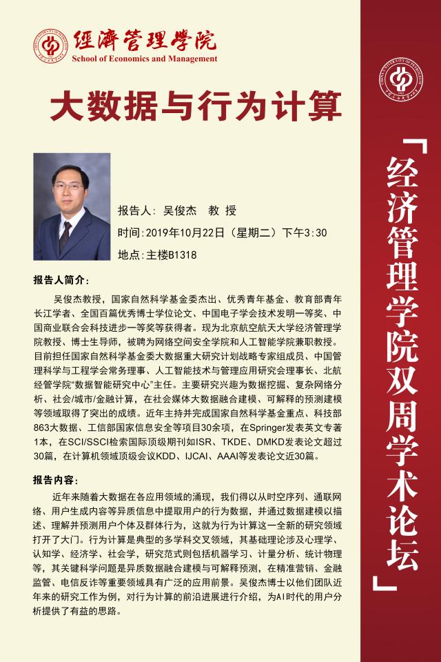 經濟管理學院雙周學術論壇講座預告