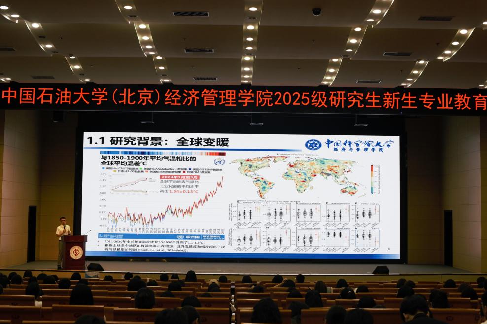 為提升師生科研素養,拓展學術視野,9月15日,經濟管理學院邀請中國科學院大學經濟與管理學院段宏波特聘教授,為學院師生了帶來以《氣候與能源經濟建模及前沿應用》為題的講座。講座由經濟管理學院副院長趙曉麗教授主持,多名專任教師以及全體2025級研究生參加了此次講座。