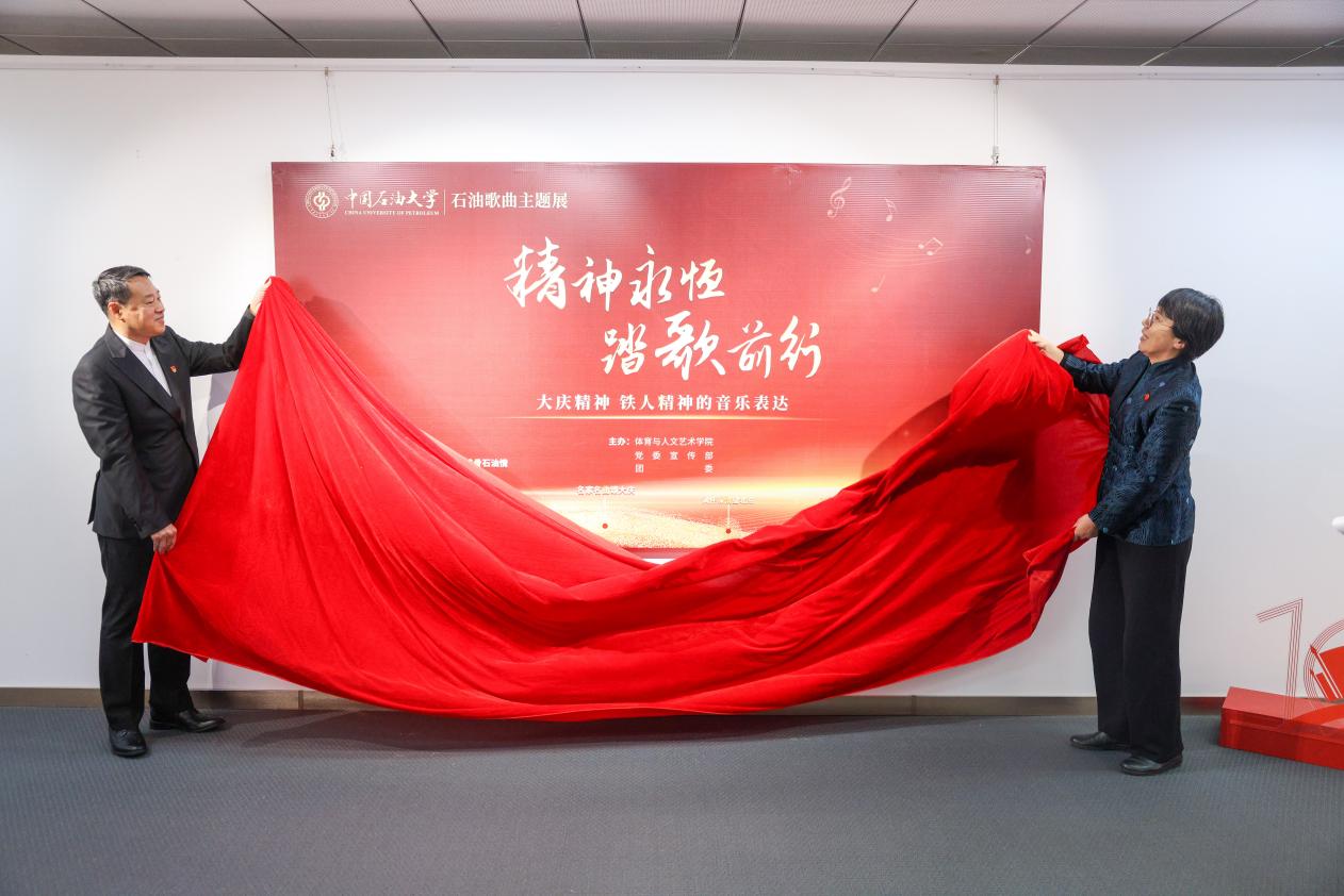 在公開課前,吳小林、王永樺教授共同為《精神永恒 踏歌前行》石油歌曲主題展覽揭幕。作為主題素質教育活動的重要內容,當日下午,學校還舉行了第十屆徒步大會頒獎活動。