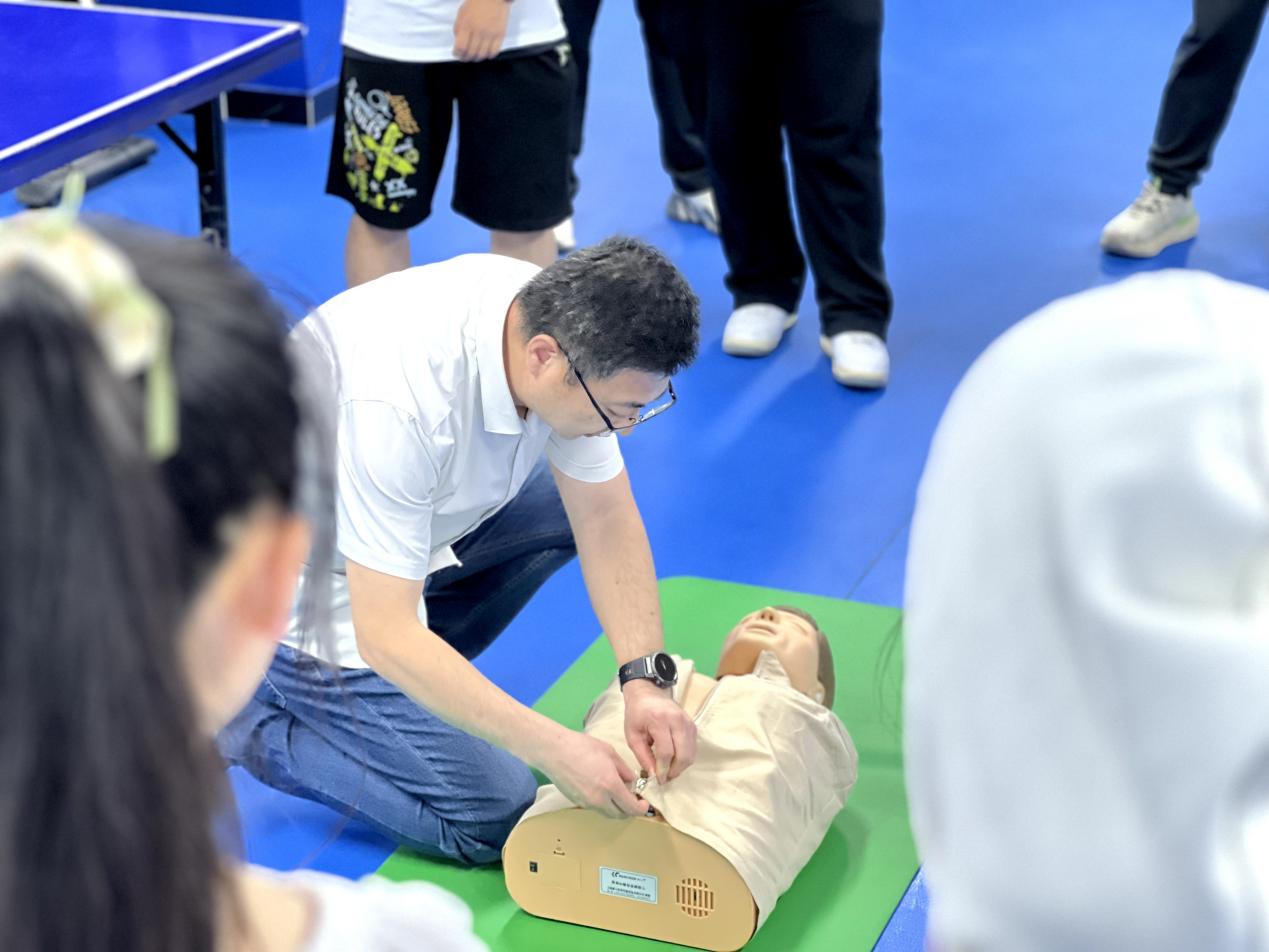生命在意外面前總是脆弱的,而急救知識就是守護生命的重要防線。中國石油大學(北京)校醫院沈曉峰院長通過現場演示與實操練習,詳細講解心肺復蘇的操作流程,從判斷患者意識、開放氣道到胸外按壓、人工呼吸,每一個步驟都精準細致。同時,還介紹了AED(自動體外除顫器)的使用方法,讓學員們深刻認識到在緊急情況下,正確運用急救技能能夠為生命爭取寶貴的時間,關鍵時刻能成為他人生命的守護者。