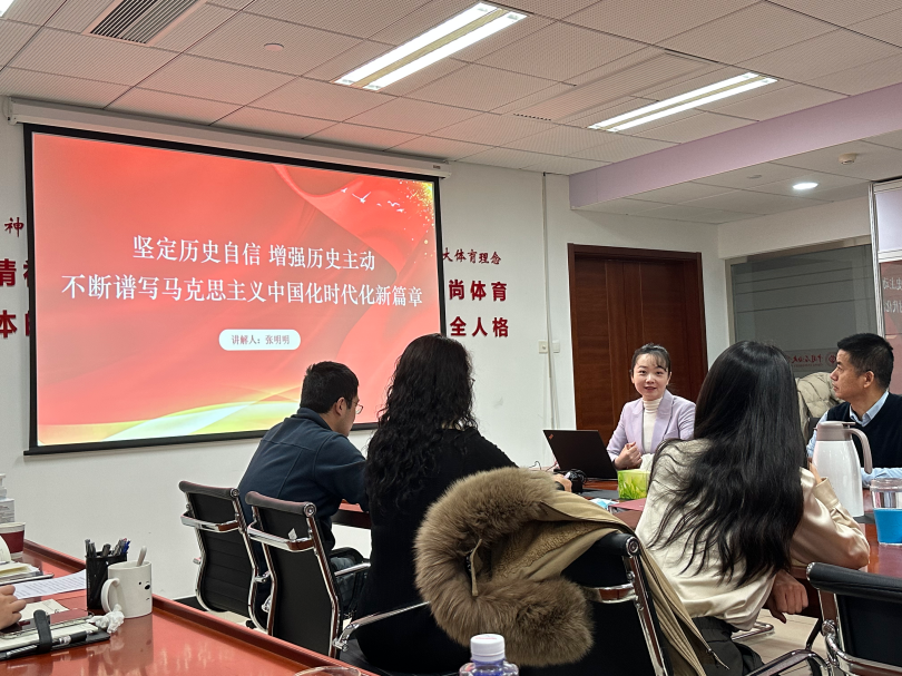 開局起步至關重要,新學期伊始,為深入學習貫徹黨的二十大精神,按照學校及學院黨委工作要求,文體學院邀請中石大馬克思主義學院院長張明明教授為學院黨員教工做題為《堅定歷史自信 增強歷史主動 不斷譜寫馬克思主義中國化時代化新篇章》報告。文體學院黨委書記張珣,院長唐亮及學院教工黨支部全體教職工參加了報告會。
