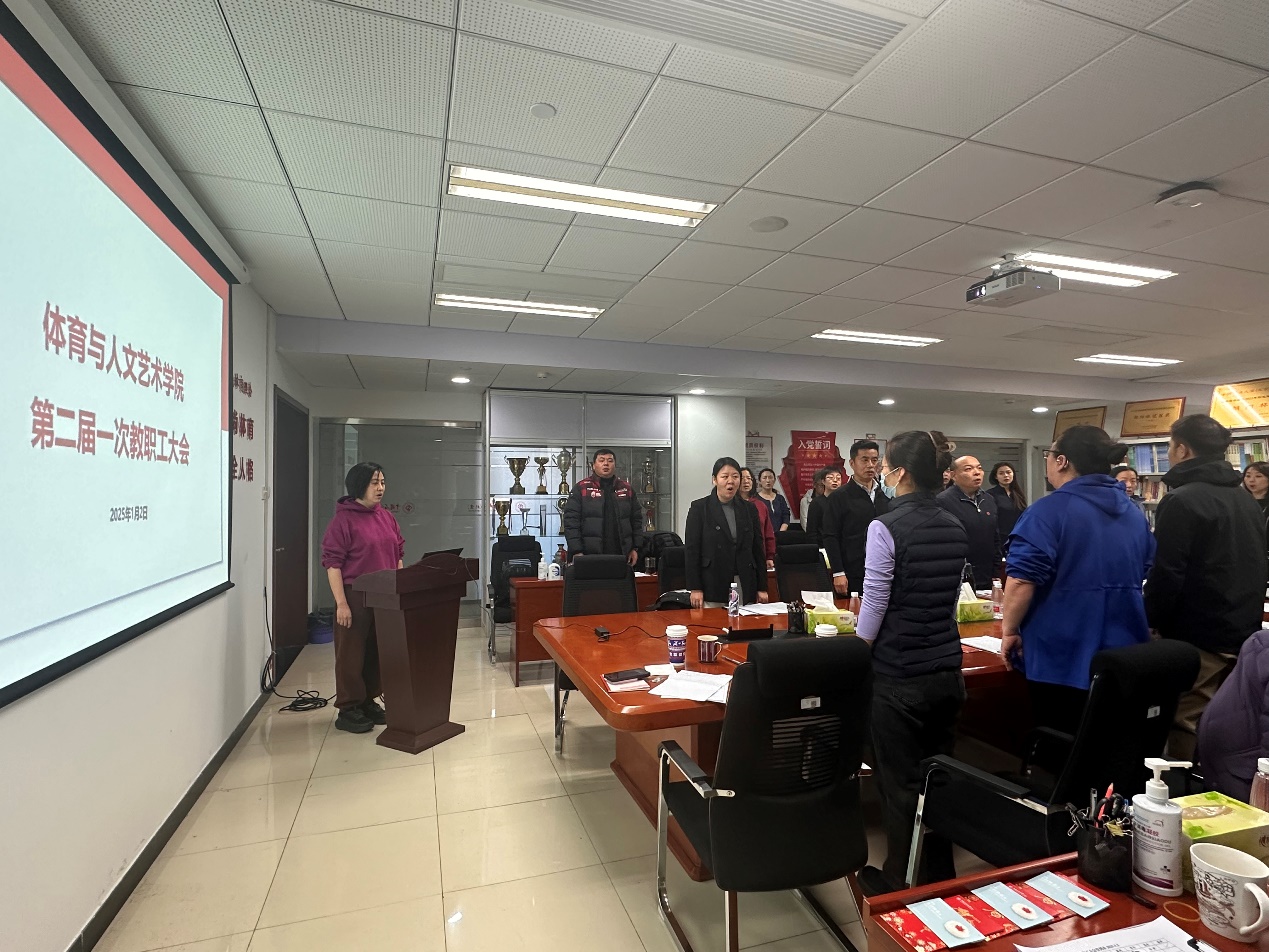 2025年1月2日上午,體育與人文藝術學院第二屆第一次教職工大會在A922會議室舉行。共有40名教職工參會。
