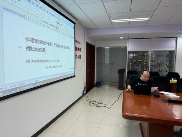 2024年5月22日上午,文體學院在922會議室召開了黨委中心組理論學習會議——文體學院黨委黨紀教育讀書班第四次學習,學院黨委委員參加會議。張珣書記導學準確掌握群眾紀律的主旨要義和規定要求,堅持人民至上,站穩人民立場,走好群眾路線,提高服務師生群眾的能力本領。