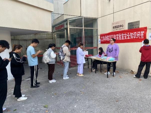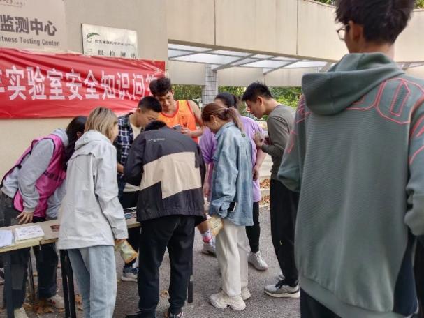 活動現場,同學們熱情高漲,積極參與問答活動。活動中,工作人員圍繞實驗室安全的應急處理措施及體質測試工作的測試項目、安全注意事項等方面進行了詳細的講解。