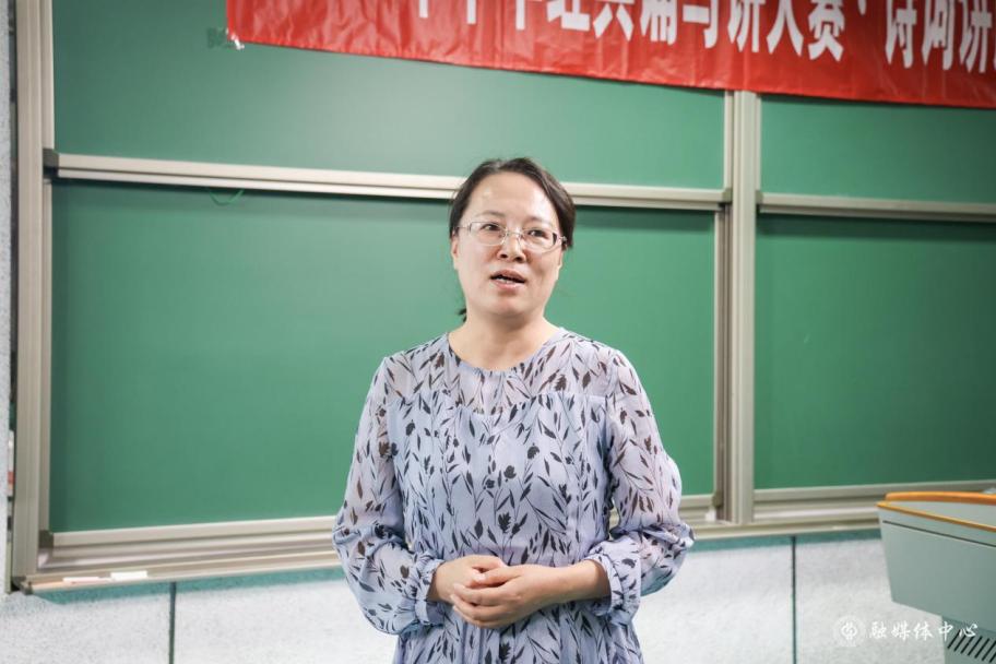 在校賽獲獎選手詩詞講解匯報展示后,黨委宣傳部部長李麗平對選手的展示進行了點評,對選手的表現給予了充分肯定,并提出了中肯的建議。